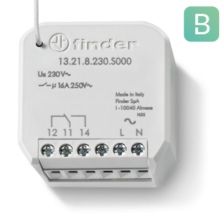 21 selectable functions: impulse, timed (1s - 24h), control of electric blinds and shutters