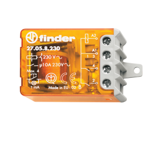 Type 27.21 - Step relay 10ASingle phase switch 1 NO (SPST-NO)It incorporates coil power limiter to permit continuous coil energisation